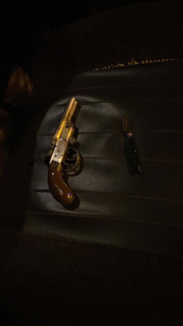 Na sequência a guarnição retornou ao ponto em que ele teria largado algo ao solo, sendo encontrada uma Garrucha, Calibre .32, de marca Rossi.