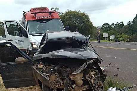 Uma colisão frontal provocou a morte de um homem e deixou outras duas pessoas feridas na manhã desta sexta-feira, dia 11, no KM 86 da Estrada do Mar, em Torres (RS), no Litoral Norte. Segundo o Comando Rodoviário da Brigada Militar (CRBM), o acidente aconteceu por volta das 10h10min, com um Fiat Uno e uma Chevrolet Tracker batendo de frente.
