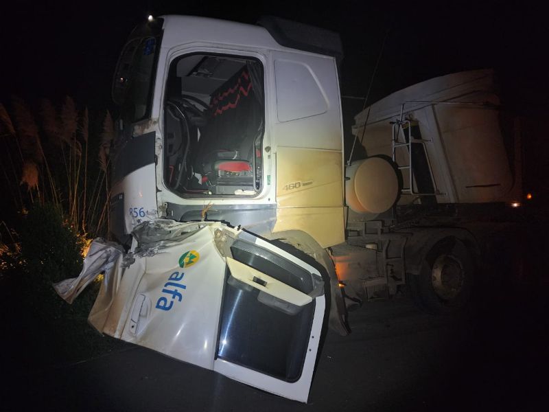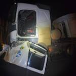 De acordo com a PRF, uma Fiat Strada bateu de frente contra uma das carretas.