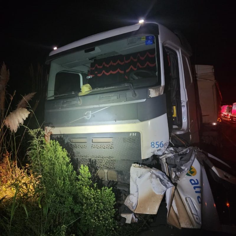 A batida entre um carro e duas carretas aconteceu no quilômetro 13 da rodovia.