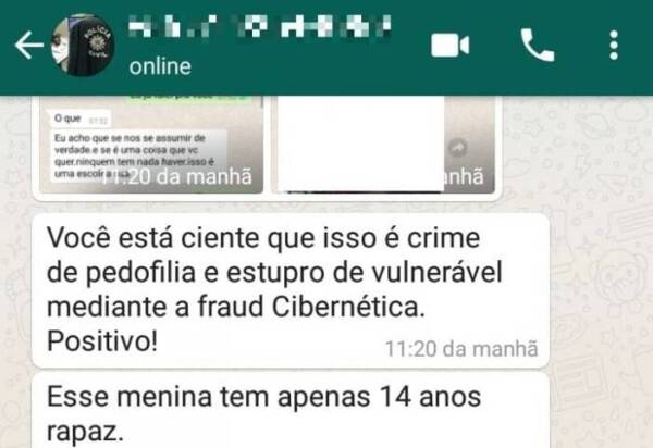 Logo em seguida um suposto pai da mulher entra na conversa e diz que a filha é menor de idade, assim o criminoso passa a chantagear a vítima, pedindo dinheiro pelos danos causados. Caso contrário, o estelionatário ameaça procurar a polícia.