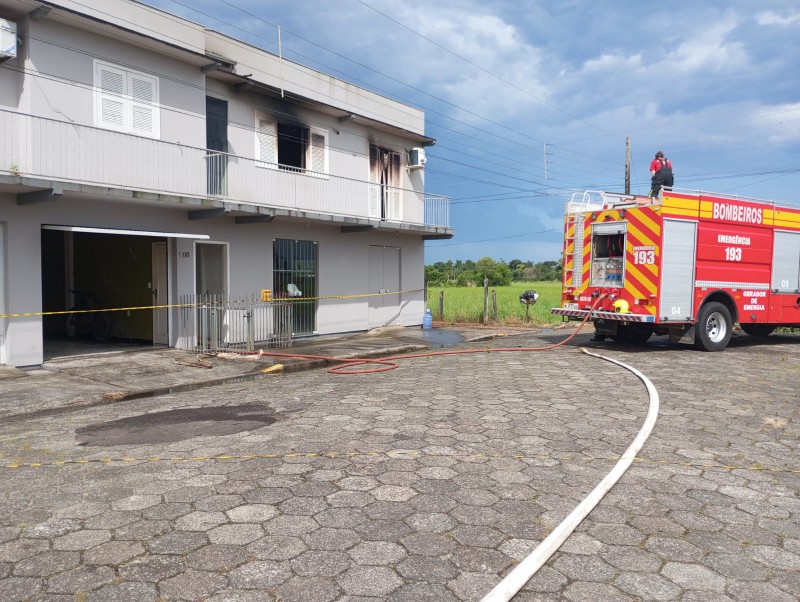 Incêndio atinge apartamentos em Turvo; bombeiros controlam chamas e evitam maiores danos