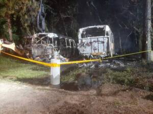 Incêndio atinge ônibus e máquina da prefeitura de São João do Sul