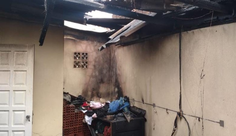 De acordo com informações do solicitante, o fogo começou em uma churrasqueira encostada na parede de alvenaria, propagando-se para a estrutura de madeira do telhado. As chamas atingiram cerca de 30m² da cobertura, causando danos à armação de madeira, ao forro e à parede.