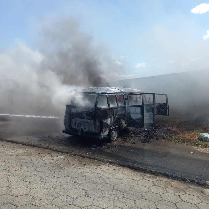 No local, a guarnição do ABTR-208 confirmou que se tratava de uma VW/Kombi, ano 1997, de cor branca, completamente tomada pelas chamas no acostamento da via. Segundo o condutor, o incêndio teve início no compartimento do motor enquanto ele dirigia. Diante da situação, ele parou o veículo em uma área afastada das residências e tentou conter o fogo com um extintor, sem sucesso.