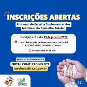 O Conselho Municipal dos Direitos da Criança e do Adolescente de Balneário Arroio do Silva informa que estão abertas as inscrições para o processo de escolha suplementar dos membros suplentes do Conselho Tutelar.