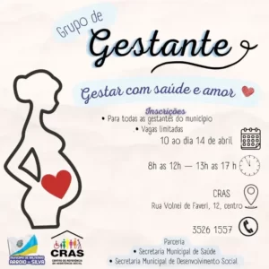 As equipes da saúde e do desenvolvimento social irão acompanhar as gestantes, orientando e auxiliando no que for necessário. “É importante este momento para que as gestantes tenham a informação e toda orientação possível. A equipe da saúde estará à disposição para dúvidas, serviços e todo acompanhamento”, frisou o secretário de saúde, Rogério Ferreira da Costa Junior.