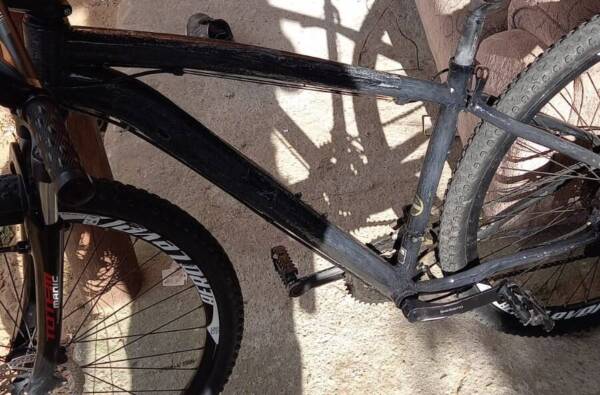 Nos fundos da residência, os policiais viram uma peça de bicicleta desmontada e uma lata de verniz de cor preta em cima de uma mesa. Outra bicicleta foi encontrada no interior da residência dentro de um quarto, e ao lado teria outra bicicleta, desmontada.