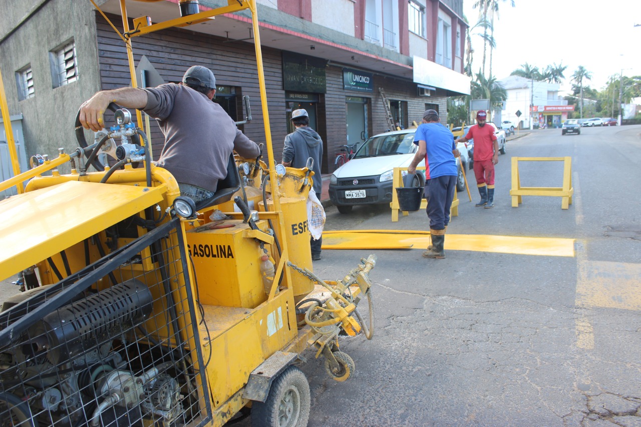 Nas primeiras ações, servidores municipais executaram a pintura de lombadas ao longo das principais vias na área central.