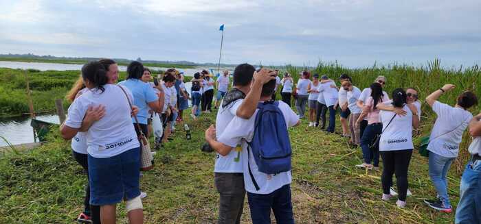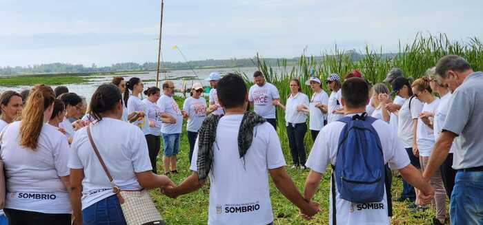 O grupo formado por servidores da saúde, além da prefeita Gislaine Cunha, saiu de frente da Igreja Matriz de Santo Antônio de Pádua até a beira da Lagoa de Sombrio, na comunidade de Furnas, Bairro Raizeira, onde realizaram uma oração, cantaram o refrão da música “É preciso saber viver”, de Roberto e Erasmo Carlos, e ouviram da prefeita e das coordenadoras do Caps e do Ament, palavras de incentivo para mudança de hábitos e a junção de cuidados com saúde física e a saúde mental.