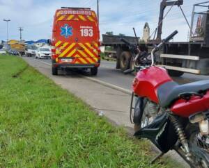 No começa da manhã desta quinta-feira (25), por volta das 07h50 na Rodovia Jorge Zanatta em Içara, ocorreu um acidente de trânsito envolvendo uma moto e um caminhão.