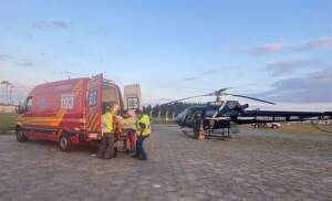 A vítima, jovem de 16 anos tem politrauma grave, foi atendida primeiro pelos bombeiros, onde parou em um campo de futebol para aguardar a aeronave.