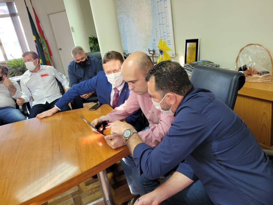Em audiência articulada pelo Deputado Estadual Volnei Weber, na tarde desta terça-feira, 26 de outubro, com o Secretário de Estado da Infraestrutura Thiago Vieira, o prefeito de Balneário Gaivota, Everaldo Kekinha dos Santos e vice-prefeito Jonatã Coelho, apresentaram o projeto técnico para execução de 21 km da Interpraias “Caminhos do Mar”, no território de Balneário Gaivota, limites com Passo de Torres e Arroio do Silva. O encontro contou com a participação do presidente da Amesc, prefeito Moacir Teixeira e prefeitos e vices da região da Amesc.