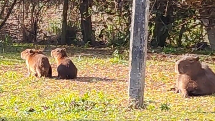 As capivaras, que fazem também fazem parte da rotina dos moradores da comunidade e despertam curiosidade nos visitantes, especialmente entre as crianças, se reproduzem na água e a usam como defesa para se esconderem dos predadores. Elas também são conhecidas por dormirem submersas, deixando apenas o focinho fora da água.