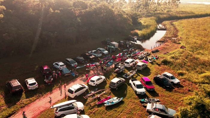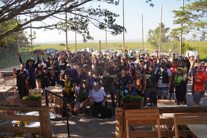 Munidos de seus caiaques e stand up paddles, os participantes coloriram a lagoa de Sombrio em um trajeto de 4 quilômetros, com a belíssima paisagem natural como companhia.