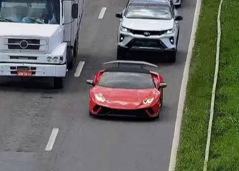 Policiais rodoviários federais interceptaram uma Lamborghini conversível de cor vermelha transitando na rodovia com diversas irregularidades de trânsito. A ação ocorreu na manhã desta terça-feira (27).