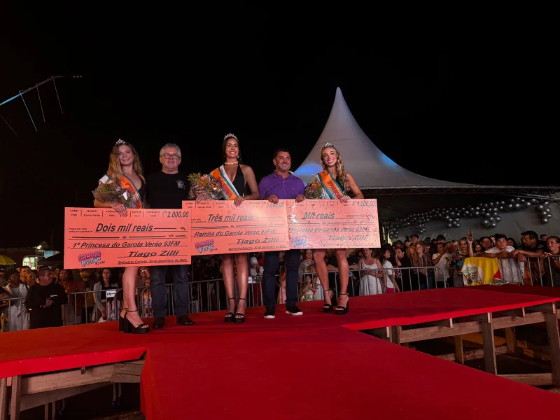 A noite de terça-feira, 30 de dezembro, foi marcada por beleza, música e integração regional na Avenida Beira Mar. O concurso Garota Verão 93FM, realizado pelo Grupo Correio do Sul, coroou suas soberanas diante de um público entusiasmado que lotou a orla para prestigiar o evento e as atrações do Pré-Réveillon.