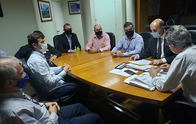 O prefeito de Meleiro, Eder Mattos, presidente da Câmara de Vereadores, Joel De Luca, e os vereadores Jonas Ostetto e Anderson Scarduelli estiveram em Florianópolis, em audiência com o secretário de Estado da Infraestrutura e Mobilidade, Leodegar Tiscoski e o deputado Estadual Zé Milton.