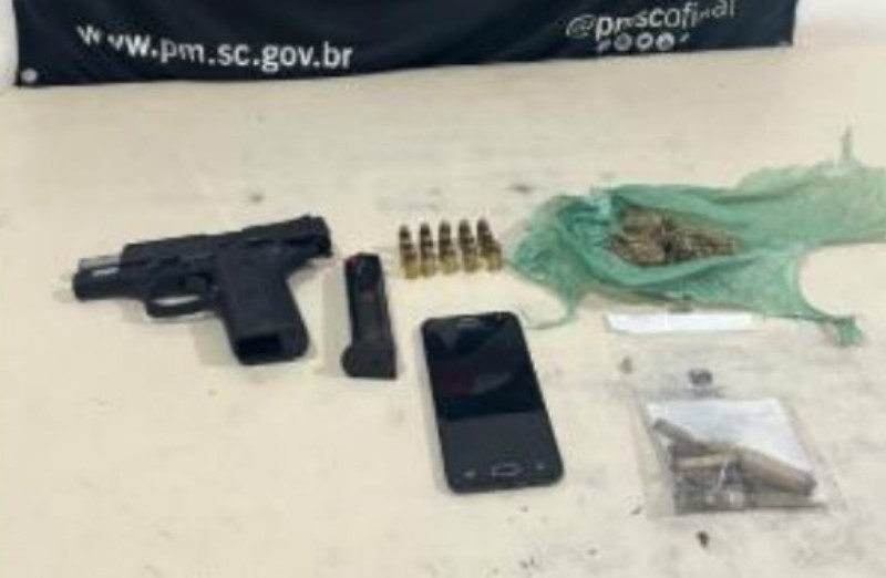 O adolescente foi encaminhado à Central de Flagrantes de Araranguá, onde foram registrados os crimes de posse de drogas para uso pessoal e posse de arma de fogo com numeração raspada.