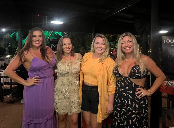 Angélica Arcaro, arquiteta de prestígio e amiga Helen Becker, Coordenadora de Turismo AMESC emoldurando as manas aniversariantes Cecilia e Ana Maria Piazza. Curtiram o Gastrocapanna.