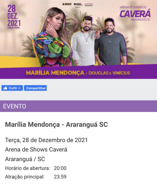 No auge da carreira, na agenda da cantora constavam ao menos dois shows em Santa Catarina para o próximo mês. Em Florianópolis, no dia 27 de dezembro, no Stage Music Park, em Jurerê, e em Araranguá, no Sul do Estado, no dia 28 de dezembro, na Arena de Shows Caverá.