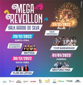 Na sexta-feira (30) haverá show com Flor de Lótus. Já na despedida de 2022, no sábado (31), a festa da virada será comandada pelo grupo Tchê Barbaridade que fará a gravação do DVD de 35 anos na Praça Central. Show pirotécnico também fará parte do grande momento da virada. “Neste ano haverá mais espetáculo pirotécnico ao longo da orla. Além do ponto na área central, haverá também na Praia da Meta, no bairro Jardim Atlântico e na Praia da Caçamba para que todos os moradores e visitantes possam acompanhar o espetáculo no céu na hora da virada”, destacou o prefeito Evandro Scaini.