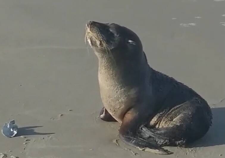 Meio Ambiente de Balneário Gaivota monitora filhote de lobo- marinho –sul-americano