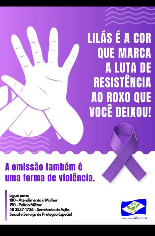 O mês de agosto é marcado pela campanha nacional contra a violência doméstica sofrida pelas mulheres de nosso país. A Secretaria de Ação Social de Meleiro promove na sexta-feira , dia 30 de agosto às 19:30, no Pavilhão do Arroz, importante palestra com a Delegada Eliane Márcia Chaves. A palestra será voltada para público masculino e feminino e adolescentes acima de 13 anos. Após a palestra haverá um coquetel aos participantes.
