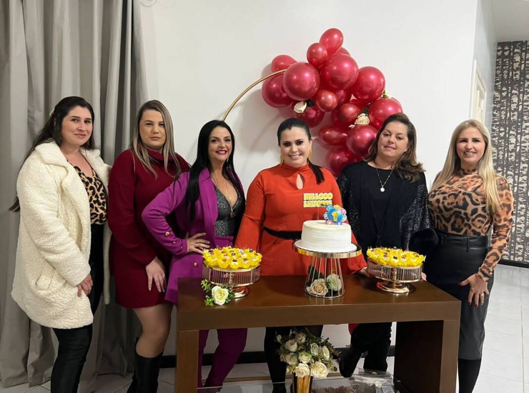 Rosane Gallo com a filha Taynara, a neta Antonella, dona Margarida, Diego Del Pino, Suelen Kruger e Manuela.