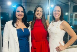 Bruna Della Vechia a primeira dama Aciva com Eloana Casagrande e Cristina (diretoria) na celebração de fim de ano Aciva.