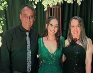 Vereador de Araranguá Dedo e a esposa Adriana emoldurando a nora Júlia Alexandre formanda em Enfermagem. Parabéns!