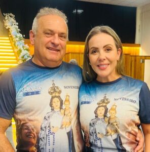 Nivaldo e Katiusia Rizzoto nos preparativos da festa Nossa Senhora Mãe dos Homens, 4 de maio Dia da Padroeira.