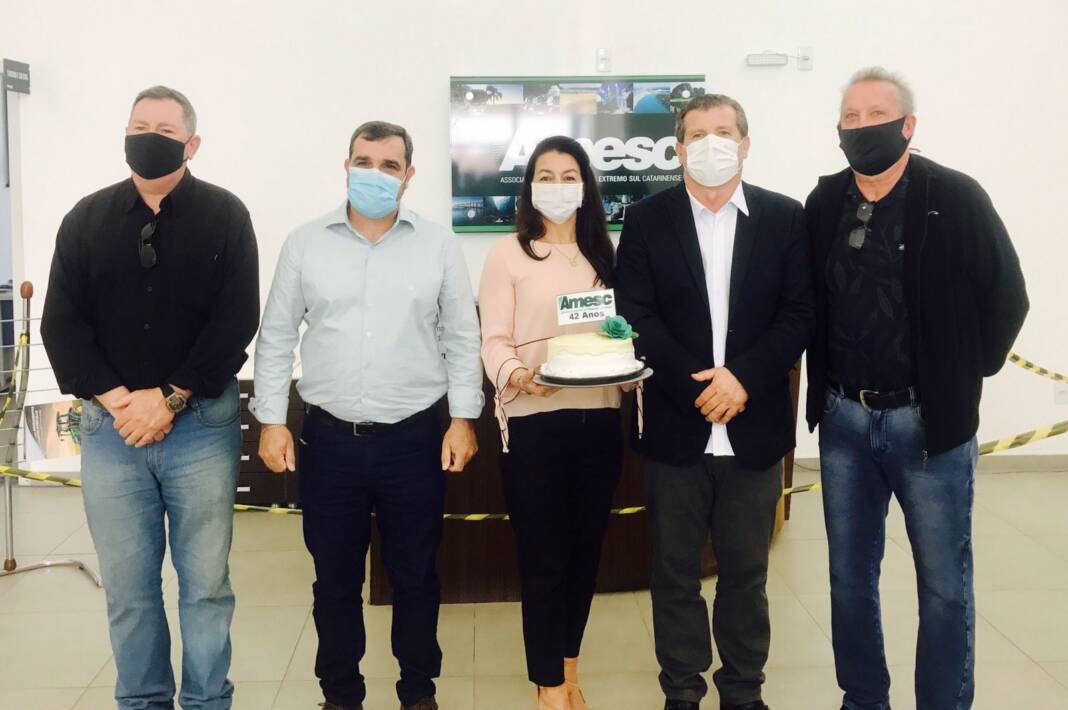 Aílson Paiva Coordenador do Movimento Econômico Amesc, Prefeita de Sombrio, Presidente e Prefeito de São João do Sul, Prefeito de Santa Rosa, Helen Becker Coordenadora do Turismo Amesc, Heriberto Schimit Administrador da AMESC.