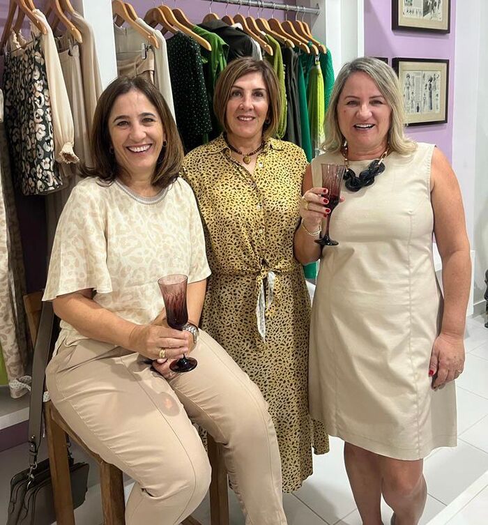 Santina e a mana Ilda Salvaro com a amiga Paula Coral no melhor tim-tim.