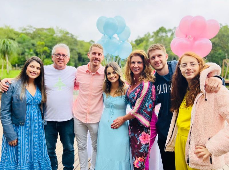 A conceituada dermatologista Luana Rocha no Chá à espera da Helena. Sua mãe Ísis, tios Aloísio e Dra. Andréia com o filho João Manoel e as primas Georgia e Flávia Oliveira.