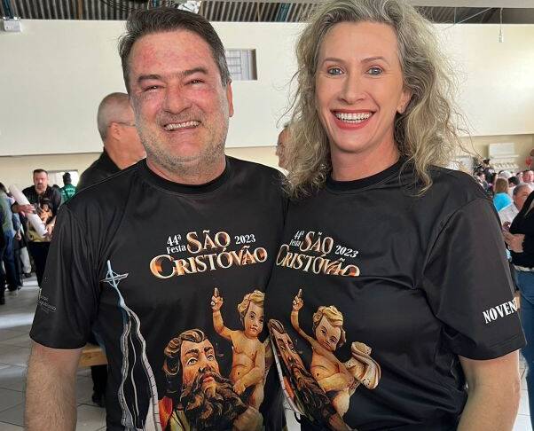 Deputado estadual Tiago Zilli com o ex-deputado Mota e a vereadora de Araranguá Lena Périco. Prestigiaram a Festa de São Cristóvão.