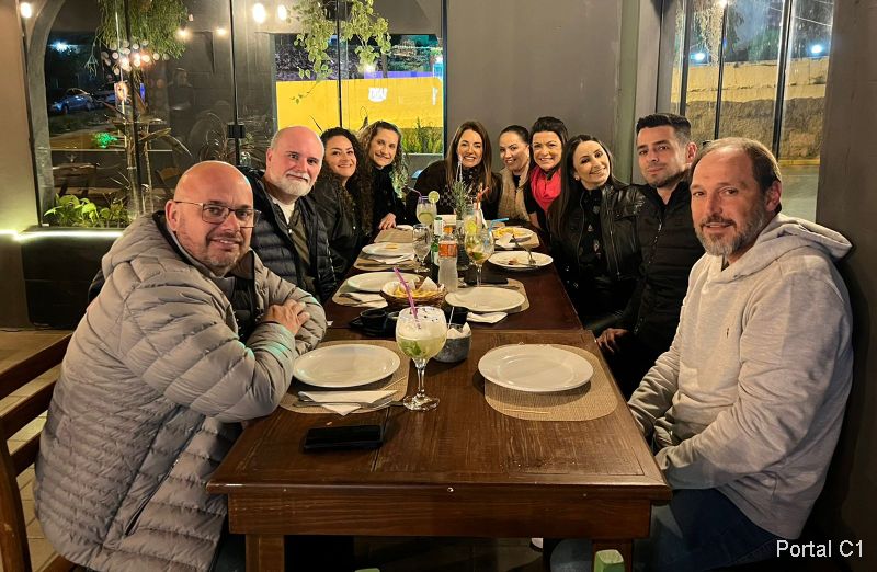 Kebe Alano e a esposa Uiara dividindo mesa com José Eckert e a esposa Eloana Casagrande. Delícias do Veleiro com excelente música.