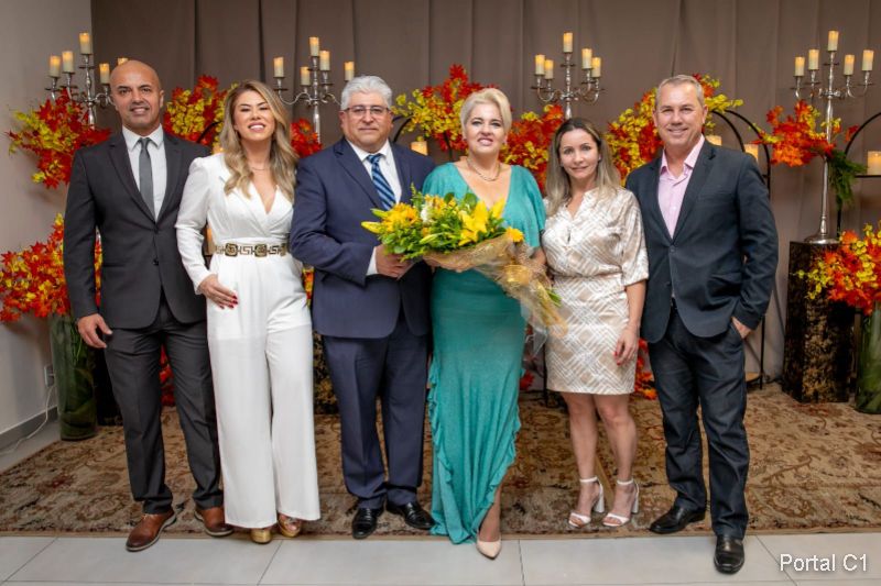 Gustavo e Débora Antunes, casal social do Grêmio presenteou o casal patronese com lindas flores. No registro com o casal presidente Evandro e Elisângela Conceição.