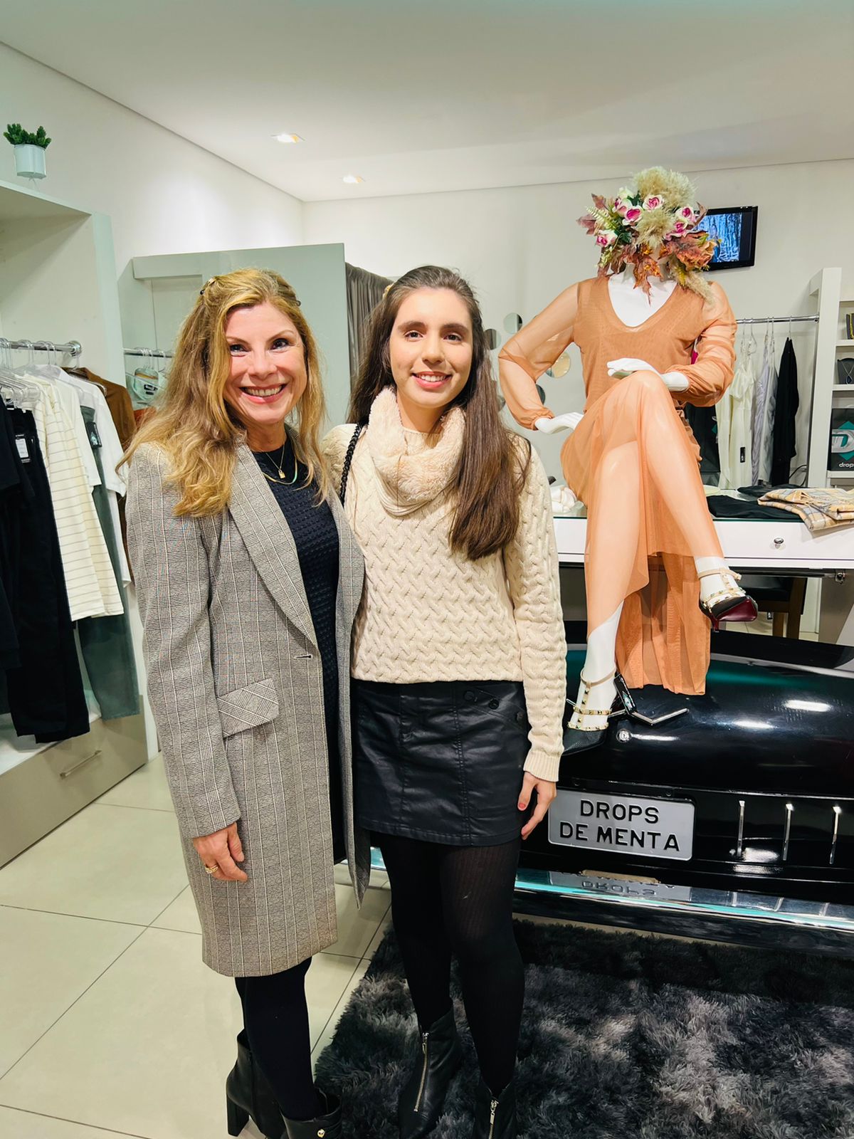 Maria Amália com a filha Maria Carolina Maragno de Mello. Na Drops de Menta.