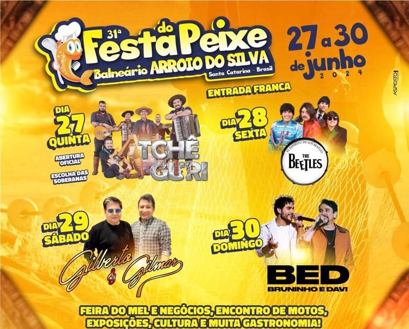 Prefeito do Arroio Evandro Scaini, as Soberanas e a Secretária do Turismo, Indústria, Comércio, Agricultura e Pesca Itaionara Recco visitaram a Alesc convidando para a Festa do Peixe. No registro com o deputado Zé Milton e seu assessor André.