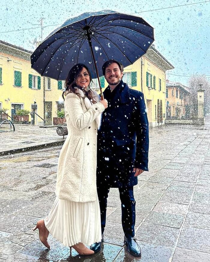 Anny Fernandes e o marido Carlo Michele del Sorto d’Amore no inverno italiano. Super românticos.