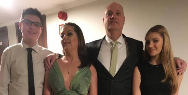 O casal de empresários JEFF e ANA PAULA BITTENCOURT com seus filhos EDUARDA e LEONARDO, prontos para testemunhar o enlace matrimonial do primo Alexandre em São Leopoldo, RS.