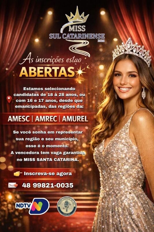 Uma noite de muita alegria e beleza está chegando novamente… NDTV, Portal C1 e Rádio 93.3fm farão história em mais um super evento que vai movimentar toda a região Sul.