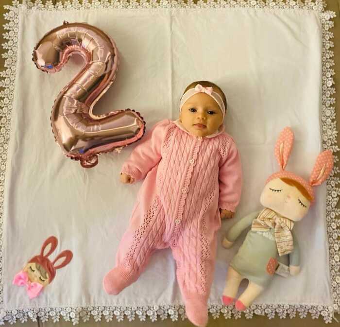 LUIZA MEDEIROS ANGELO completou no domingo dia 10, seus dois meses de muita fofurice! Ela é uma verdadeira “boneca”.