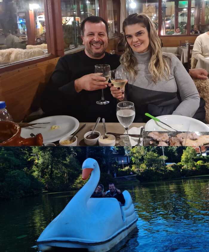 O casal de brasileiros que mora nos Estados Unidos, aproveitaram o último final de semana 9 e 10/04, para curtirem a charmosa cidade de Gramado, na Serra Gaúcha. Se deliciaram no fondue, famoso na cidade e conheceram o belo Lago Negro, um dos pontos turísticos mais visitados.