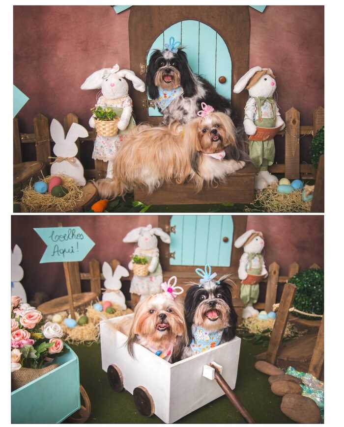 E quem veio desejar uma ABENÇOADA PÁSCOA para todos vocês, é essa duplinha fofa e feliz, BUDDY e BELLA! Pelas lentes da fotógrafa Carina Steinmetz, eles posaram para um ensaio de Páscoa muito fofo e divertido.