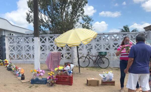 Na frente dos cemitérios, ambulantes aproveitaram a data para vender flores, velas, comidas e bebidas, reforçando a renda, nesta época de insegurança econômica, devido à pandemia do coronavírus.
