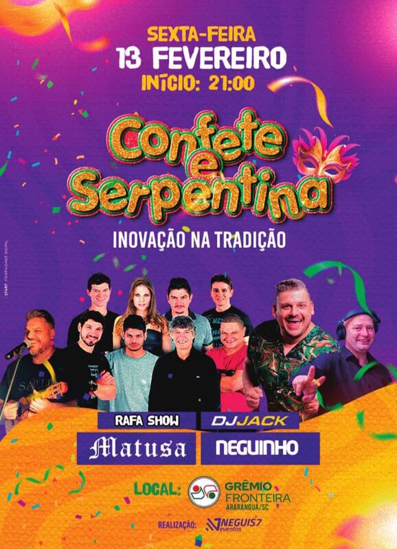 É AMANHÃÃÃÃ… o carnaval CONFETE E SERPENTINA no majestoso Clube Grêmio Fronteira que vai agitar toda a região! Será inesquecível, não fique de fora.