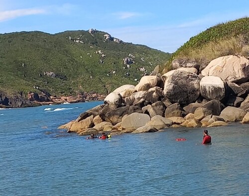 Ainda de acordo com a testemunha, já próximo da ilha, a vítima relatou que estava cansada e afundou, não sendo mais visto. Os guarda-vidas entraram na água e iniciaram as buscas com o apoio da equipe do helicóptero do Serviço de Atendimento e Resgate Aeromédico do Sul (Sarasul/Saer) e de mergulhadores, que conseguiram encontrar o banhista, mas já sem vida.