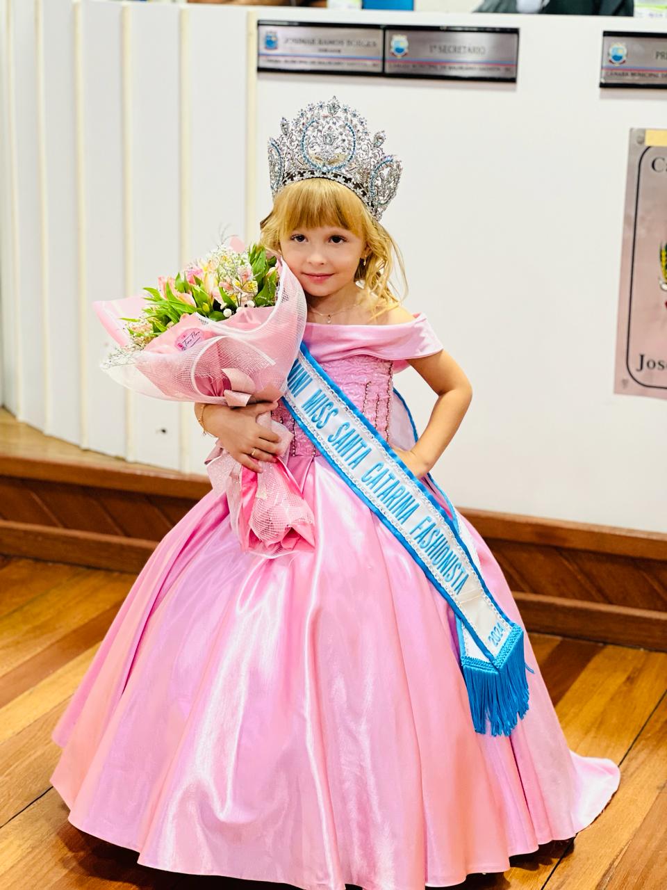 A pequena Helena Santos, de três anos, moradora de Balneário Gaivota, foi indicada a ser mini miss Santa Catarina e, na última semana recebeu sua ficha e sua coroa pela indicação.